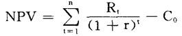 释义 | 净现值评估法 评估投资方案的方法之一。 这种方法很简单,先计算出投资方案的净现值,如果净现值大于零,表明该投资方案所提供的现值收益大于现值成本,因此可以采纳;如小于零则应放弃。一个投资方案的净现值就是该方案带来的未来的成本流量和收益流量的贴现值之差。计算公式为: 式中:NPV为投资方案的净现值,Rt为第t期净现金流量,C0为投资方案的原始成本,r为机会利率,t为期数。 |