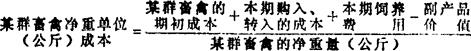 释义 | 净重成本 是按幼畜禽和育肥畜禽在一定日期的净重所计算的单位饲养成本。通常分别各类畜禽的群别计算。计算公式如下: 本期饲养费用包括死亡畜禽的饲养费用在内。畜禽的净重量,可用期末结存畜禽的净重加本期转出、售出的净重(不包括本期死亡畜禽的净重量)求得。 净重成本反映畜禽在一定日期(如年终)每单位净重的平均成本,是考核畜禽饲养工作质量的一项指标。 |