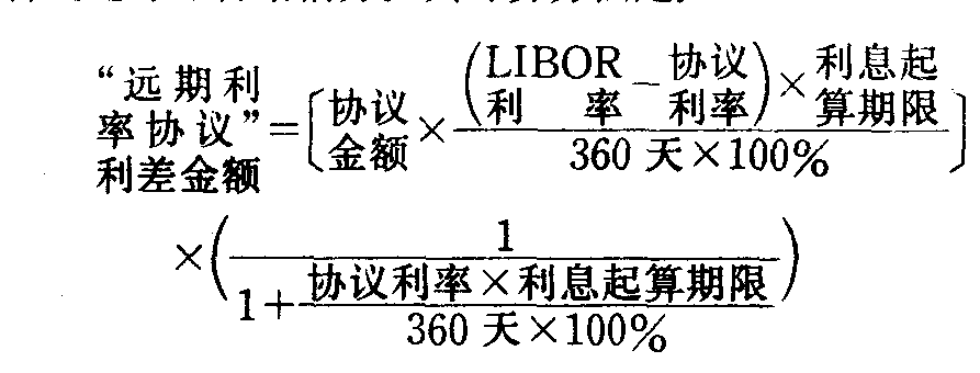 ☚ 杠杆存款 远期利率互换 ☛ 远期利率协议 远期利率协议防止国际金融市场上利率变动风险的一种保值方法。远期利率协议保值产生于伦敦金融市场,并迅速被世界各大金融中心接受。随着远期利率协议的广泛应用,1984年6月在伦敦形成了“远期利率协议”市场。远期利率协议保值,是在借贷关系确立以后,由借贷双方签订一项“远期利率协议”,约定起算利息的日期,并在起算利息之日,将签约时约定的利率与伦敦银行同业折放利率(LIBOR)比较。倘若协议约定利率低于LIBOR利率,所发生的差额由借方付给贷方。其计算方法是: