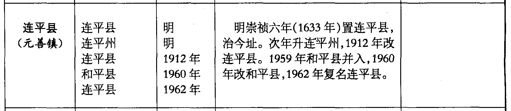 连平县(元善镇)连平县连平州连平县和平县连平县明明1912年1960年1962年明崇祯六年(1633年)置连平县,治今址。次年升连平州,1912年改连平县。1959年和平县并入,1960年改和平县,1962年复名连平县。