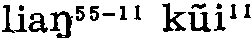 释义 连柜2600柜台。闽语。福建厦门〖lian24 kui22〗。广东潮阳〖〗。