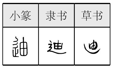 迪Dí现行较罕见姓氏。今山西之太原、晋城、运城,陕西之韩城,新疆之塔城,云南之泸水等地均有分布。汉族、傈僳族姓氏。《新编千家姓》收载。《姓氏词典》引《元史》亦载。《中国姓氏大全》称: “为迪姑氏、迪古氏改。” 迪 迪dí进用。《大雅·桑柔》十一章: “维此良人,弗求弗迪。” 毛《传》: “迪,进也。”郑《笺》:“良,善也。国有善人,王不求索,不进用之。” ☚ 典刑 罔 ☛ 迪读音d·i(ˊ),为i韵目,属i—er韵部。徒历切,入,锡韵。 ❶开导;引导;启迪。 ❷道;道理。 ❸蹈;实践。 上一条: 廸 下一条: "> 迪ㄉㄧˊdí三3399①代这。吴语。上海〖 〗。滑稽戏《三毛学生意》:「勿要紧格,~种人格样子是~能格。」②动要。闽语。福建厦门〖 〗。我不~铅笔‖~薄仔。③动双手紧持棍或棍状物。粤语。广东阳江〖 〗。   迪dí〈文〉开导 △ 启~。 迪廸开导;引导:启~︱训~。 迪dí❶ 开导,引导:启迪。 ❷ 姓。 迪(1次) 道。易初本~兮《章·怀》 迪dí道路,引申为常道、法度。《说文·辵部》:“迪,道也。”《怀沙》:“易初本迪兮,君子所鄙。”王逸注:“变易初行,远离常道。”蒋骥注:“易初本迪,谓变易其初时本然之道也。”《史记》作“由”。《尔雅·释诂》:“由,道也。”“由”与“迪”意同。 迪道也。《禮記·緇衣》: “《康誥》曰:敬明乃罰。《甫刑》曰:播刑不迪。”鄭玄注: “迪,道也。” 陸德明《經典釋文》:“迪,音狄。” 《尚書古文·牧誓》: “昏棄厥肆祀,弗答; 昏棄厥遺王父母弟,不迪。” 鄭玄注: “迪,道也。” (《通德堂經解》) 《尚書·太誓》: “昏棄厥遺王父母弟,不迪。” 鄭玄注: “迪,道也。” (《鄭氏佚書》) 迪dí❶ 道理。《尚书·大禹谟》:“惠~吉,从逆凶。”(惠:遵循。)《楚辞·九章·怀沙》:“易初本~兮,君子所鄙。” ❷ 开导,引导。《尚书·太甲上》:“启~后人。” ❸ 依照,遵循。《法言·先知》:“为国不~其法而望其效。” ❹ 句首、句中语气词。《尚书·君奭》:“~惟前人光,施于我冲子。”又《立政》:“古之人~惟有夏。” 迪*diB5CF 〈文〉❶开导,引导:启~。 ❷遵循,依从:汉~于秦,有革有因(《汉书》)。 继承 继承继(继绍;继受;继述;继祀;继缵;传继) 承(承继;承袭;承受;经承;统承) 迪 绍(绍承;绍述;绍继;修绍) 似(似续) 嗣(嗣承;嗣袭;嗣绍;起嗣) 踵(踵迹;踵继;踵躅) 绳(~其祖武) 续(似续;接续;嗣续) 袭(袭承;袭荷) 纂(纂承;纂绍;纂继;纂袭) 缵(缵继;缵承;缵绍) 顶戴 秉赋 负荷 似续 因循 继承祖先教训:词训 继承传统:缉绪 继承某种流派的艺术特色、风格传统等:承流接响 承继大志:承志 依法承受(死者遗产等):继承 职位或事业的继承:兄死弟及 兄终弟及 文化遗产的继承:古为今用 艺术上的继承:衣钵(传授~) 一般师徒间学艺上的继承:衣钵相承 衣钵相传 恢复继承:恢缵 开拓,继承:开嗣 接受,继承:资承 遵循继承:遹追 能够继承:克承 克绍 继承并遵循:嗣述 代代继承:承承 子孙世代继承:嗣续 续进 演承 世济 恭敬地继承:钦承 很好地继承:丕承 丕时 广泛搜集,多方继承:旁搜远绍 有继承人:后继有人 继起有人 家族不绝后,后继有人:香火不绝 香火不断 继承人稀少:不绝如缕 缺乏继承人:后继无人 后继乏人 (接续前人的作风、文化、事业等:继承)