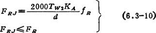 释义 | 减速器的选用 选用减速器要考虑原动机、工作机类型及载荷性质和每日平均运转时间的影响。一般情况的选用计算,应计入工况系数KA。起动中或运转中的短时最大尖峰载荷,不得超过额定载荷的2.5倍,每小时起动次数不超过10次。 计算输入功率P1J或计算输出转矩T2J: P1J=KAPW1 (6.3-8)或T2J=KATW2 (6.3-9) 式中 PW1为原动机输出功率或减速器实际输入功率(kW);TW2为工作机输入转矩或减速器实际输出转矩(N·m);KA为工况系数,见表6.3-35。按P1J≤P1或T2J≤T2,由表6.3-30选减速器。 表6.3-35 工况系数KA 注: 减速器输出轴轴伸装有齿轮、链轮、V带轮或平带轮时,需校验轴伸径向力: 式中 FRJ为轴伸计算径向力(N);TW2为减速器实际输出转矩(N·m);KA为工况系数,见表6.3-35;d为齿轮、链轮、V带轮或平带轮节圆直径(mm);fR为径向力系数,轴伸装有齿轮取1.5,装有链轮时取1.2,装有V带轮时取2.0,装有平带轮时取2.5;FR为轴伸许用径向力(N),见表6.3-32。 输入热功率校验按工作制度进行。在下列间歇工作中可不校验输入热功率:在1h内多次(两次以上)起动,且运转时间总和不超过20min的场合;在一个工作周期内运转时间不超过40min,且间隔2h以上起动一次的场合。除上述状况外,如果实际输入功率超过许用输入热功率,则须采用强制冷却措施或选用更大规格的减速器。 例6.3-2 皮带运输机用直廓环面蜗杆减速器,中等冲击载荷,每日工作8h,连续运转,电动机功率Pw1=15kW,减速器输入转速n1=1500r/min,传动比i=31.5。 由表6.3-35查得KA=1.3,则计算输入功率: P1J=PW1·KA=15×1.3=19.5kW 查表6.3-30,选择减速器中心距a=200mm,n1=1500r/min,i=31.5,额定输入功率P1=25.6kW>P1J,机械强度通过。 校验输入热功率:由表6.3-31查得a=200mm、i=31.5、n1=1500r/min时,许用输入热功率Pa=14kW<PW1,须采取强制冷却措施,否则应选用a=250mm的减速器。 例6.3-3 卷扬机用减速器,均匀载荷,每日工作2h,每小时工作15min,减速器输入轴转速n1=1500r/min,传动比i=50,输出轴转矩TW2=9500N·m。 由表6.3-35查得工况系数K4=1.0,则计算输出转矩: T2J=TW2KA=9500×1.0=9500N·m 查表6.3-30,选择中心距a=315mm,i=50。因n1=1500r/min,额定输出转矩T2=11040N·m。故机械强度满足。由于属于间歇性工作,故不需校验输入热功率。 减速器一般采用油池润滑。蜗杆中间平面分度圆滑动速度Vs大于10m/s时,采用强制润滑。蜗杆中间平面分度圆滑动速度Vs见表6.3-36。当环境温度在0~40℃时,减速器在不同转速下的润滑油品按表6.3-37的规定,不允许选用极压型齿轮油。 表6.3-36 HWT、HWB型减速器蜗杆中间平面分度圆滑动速度Vs (n1=1500r/min) 注:如减速器的输入转速n1不等于1500r/min,可按比例由表中值计算。例如,输入转速为1000r/min、i=25、中心距为200mm、1500r/min时,由表查出Vs=5.67m/s,则1000r/min时的滑动速度应为5.67×1000/1500=3.78m/s。 表6.3-37 HWT、HWB型减速器润滑油选用表 注:当环境温度低于0℃或高于40℃时润滑油要相应加热或冷却. HWB型减速器,当蜗杆中间平面分度圆圆周速度V2小于2m/s时,蜗轮轴承可以采用锂基润滑脂润滑。 |
