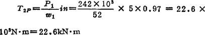 释义 | 减速器的选用 已知实际输入功率PW1或低速轴转矩T2、高速轴角速度ω1、低速轴转矩及角速度变化图、最大尖峰载荷、传动比i、寿命、装配形式后,可按程序选用。 先根据传动比i选型(ZDH、ZLH、ZSH或ZD、ZL、ZS),再决定工作类型。其总工作时间Tw按下式计算: Tw=TuKdKy△,h 式中 Tu为整个使用期的时间(h);Kd=每日工作小时数/24,为日利用系数;Ky=每年工作日数/365,为年利用系数;△=tw/ta,为每一工作循环时间的利用系数;tw为每一工作循环的工作时间(h);ta为每一工作循环的总时间(h)。 当量工作时间Ta按下式计算: 载荷与角速度可以认为是常数时:Ta=Ta 载荷可以认为是阶梯式变化时: 先根据传动比i=5,选用ZDH(或ZD)型单级减速器。再决定工作类型(按轮齿载荷较大的工作面A计算):齿面A每一工作循环的工作时间tw=4+8+4=16s;每一工作循环的总时间ta=50s;每一工作循环的利用系数△==tw/ta=16/50=0.32;齿面A的总工作时间Tw=Tvc△=63000×0.32=20160h。 由于载荷和角速度均是变化的,故应计算当量工作时间Ta。 (P/ωh)max=22.5~19.7kN·m时:相对应的时间tmax=4/50×63000=5040h;相对应的角速度平均值ωmaxm=(0+3.06)/2=1.53rad/s。 (P/ωk)1=1.4kN·m时:相对应的时间t1=8/50×63000=10080h;相对应的角速度ωt=3.06rad/s。 (P/ωk)2=13.35~10.55kN·m时;相对应的时间t2=4/50×63000=5040h, 相对应的角速度平均值ω2m==(3.06+0)/2=1.53rad/s。 查表6.2-28,按Tw的要求应选特重型,但考虑到Ta不大,且Tw中占一半的是微小载荷,所以决定按重型选择减速器。则输入轴角速度ω1=iω2=5(0~3.06)=0~15.3rad/s。但标准减速器输入轴角速度最低为52rad/s,所以按ω1=52rad/s选用。 挖掘机所需最大转矩(P/ωk)max=22.5kN·m。其中ωk应以所选减速器的角速度52/i代入,即减速器输入功率需为: ×103N·m/s=241kW 查表6.2-29,ω1=52rad/s,i=5,重型,高速轴额定输入功率P1=280kW,接近且偏大于241kW,故选a=600mm。 核验尖峰载荷:ω1=52rad/s,a=600mm,i=5,连续型P1=242kW 换算为挖掘机输出轴连续运转下能传递的转矩: 减速器许用尖峰载荷:T2maxP=3.1T2P=3.1×22.6=70kN·m>49kN·m 故尖峰载荷满足要求。所选减速器代号为:ZDH60-5-Ⅱ(或ZD60-9-Ⅱ)。最后,由表6.2-25查得实际传动比i′=5.083(或4.92)。 减速器采用油池润滑,也可采用循环润滑。采用油池润滑的注油量,对于ZDH和ZD系列,大齿轮浸油1~2个全齿高;ZLH和ZL系列,低速级大齿轮浸油1~2个全齿高;ZSH和ZS系列,中间级大齿轮(第三轴大齿轮)浸油1~2个全齿高。常温条件下,润滑油的粘度按表6.2-44选择。建议在润滑油中加入添加剂以增加抗胶合性能。 表6.2-44 ZDL、ZLH、ZSH、ZD、ZL、ZS型减速器润滑油粘度的选择 注: ❷ mn为低速级齿轮的模数。 |