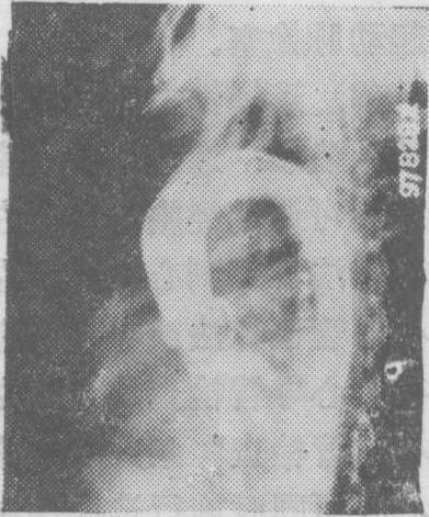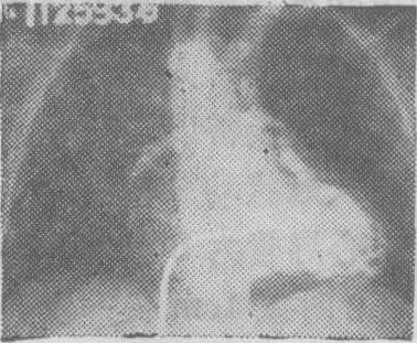 图示造影剂从右心室喷入肺动脉时呈细柱状影,肺总动脉呈明显的狭窄后扩张,状如动脉瘤。 图2 法乐四联症右心室造影(正位) 显示肺动脉与主动脉及其分支同时显影,右心室流出道狭窄。 (3) 右心室内: 在右心室流出道注射造影剂可显示漏斗部、肺动脉瓣和肺动脉狭窄(图1)。法乐四联症时在右心室注射造影剂可见主动脉及其分支无名动脉、颈动脉、锁骨下动脉和右心室流出道、肺动脉瓣、肺动脉一起显影,可见肺动脉瓣和漏斗部的狭窄情况(图2)。心室间隔缺损有右至左分流时,可见造影剂从右心室进入左心室; 在只有左至右分流的病人,如注射压力高,且造影剂在心室舒张期注入时,则造影剂亦可能通过心室间隔缺损而由右心室扩散入左心室。艾生曼格综合征 (心室间隔缺损型、动脉导管未闭型与主动脉肺动脉间隔缺损型)、大血管错位、右心室双出口、肺动静脉瘘和肺动脉扩张等亦可在选择性右心室造影过程中得到显示。 (4) 肺动脉内: 在肺总动脉或左、右肺动脉注射造影剂可以显示肺动脉扩张、周围肺动脉狭窄和肺动静脉瘘等。亦可用于显示肺静脉畸形引流和左心房粘液瘤等病变。 在注射造影剂之前必需再三肯定心导管顶端确在选定的心腔或血管腔,且必需游离在血流中,切忌顶住心壁或血管壁。注射时术者应一手固定心导管露在体外的部分,以尽可能防止心导管移位或脱出。造影完毕拔出心导管,处理手术伤口。术后处理与右心导管检查相同,可嘱病人多饮水以利造影剂排泄。 本检查主要用于下列情况: ❶了解肺动脉口狭窄属瓣膜型、肺动脉型抑右心室漏斗部型。 ❷拟施行直视纠正手术的法乐四联症病人,术前了解主动脉骑跨与肺动脉口狭窄的程度和部位。 ❸诊断大血管错位、肺动静脉瘘、三尖瓣病变和右心房肿瘤等。 本检查的禁忌证与右心导管检查相同,但有显著的肺动脉高压、严重紫绀或有心力衰竭的病人,即使勉强进行了右心导管检查亦不宜作本检查。对碘剂过敏或肾功能不良者为禁忌证。 本检查除有与右心导管检查相同的并发症外,还可能有注射碘造影剂所引起的反应,如全身灼热感、恶心、呕吐、皮肤发痒或异常感、荨麻疹、胸闷、眩晕、多涎等,偶可发生造影剂渗入心肌,以后形成心室壁膨胀瘤,甚至心脏穿孔、心包填塞,后者需立即施行手术修补、引流。 左心选择性心血管造影术 将造影心导管的顶端送到左侧心脏各处选定部位,注入造影剂进行造影称为选择性左心造影。 左心选择性心血管造影有以下几种方法: (1) 选择性左心房造影:在各种左心房心导管检查中,以用穿刺心房间隔左心导管检查法(见“左心导管检查”条)送入有侧孔的心导管造影最为安全有效,且可在右心导管检查后进行,左心房造影完毕后还可将心导管送入左心室造影。选择性左心房造影可显示左心房大小和舒缩情况、左心房肿瘤、二尖瓣病变以及有左至右分流的心房间隔缺损,但主要用于观察二尖瓣狭窄。显影二尖瓣以取右前斜位投照最好。在左心房造影时造影剂可能逆流入肺静脉而使肺静脉部分地显影。 选择性左心房造影主要用于诊断左心房肿瘤和二尖瓣病变,但如估计左心房内有血栓形成或粘液瘤则不宜用穿刺心房间隔或向左心房送入造影心导管的方法造影,以免血栓或粘液瘤碎片脱落引起动脉栓塞。