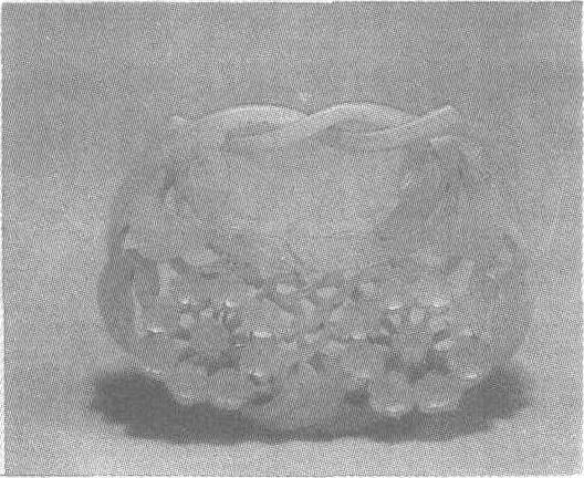 北宋。径7.2—9厘米。1974年北京市房山县长沟峪石椁墓出土。北京首都博物馆藏。青玉所制。两枝折枝花缠绕盘曲在一起。花卉以透雕为主,花叶的筋脉则以阴线装饰。椭圆图案的边缘巧妙地以花枝、花叶的本体构成,是迄今所见最精美的折枝花玉器。