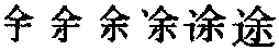 【提示】余,第六笔宋体是撇,楷体是点。辶,3画,上面一点; 旧字形4画,上面两点。辶的第二笔,宋体是横折,楷体是横折折撇。 *途tú10画 辶部 道路: 坦~|长~|旅~|道听~说。 途tú甲骨文以来的形声字。从走之旁(辵chuò,走路),余声。音变如余涂荼(tú)酴例。指道路。如:坦途|半途而废。组词如:道途|路途|途径|前途|用途。金文和小篆中未见。古书多用塗字,塗现作涂的繁体字。见《总表》。 途★常◎常tú形声,从辵,余声,本义为道路,引申为门径。 【辨析】 ❶途/路/道 见73页“道”。 ❷途/涂 见414页“涂”。 |