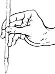 执笔时,虎口平直,形似凤眼。腕僵欠灵,运笔