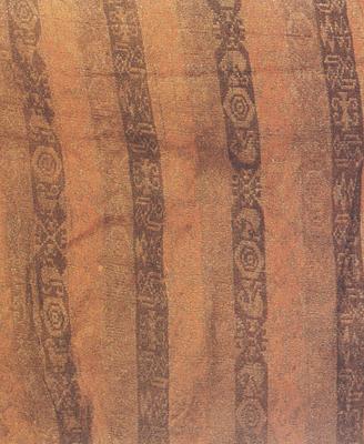 释义 | 凤鸟凫几何纹锦 ◎经线提花锦/战国中期 1982年湖北江陵马山1号楚墓出土 幅宽49~50厘米 幅边0.6厘米 厚0.33毫米 经密每厘米112根 纬密每厘米38根 花纹经向长7.2厘米 纬向宽20.5厘米/湖北省荆州地区博物馆藏 ●战国时期的文化以楚国尤为发达。 在大量的楚墓出土的作品中,凤鸟图案被广泛地使用。已往的凤鸟非常流畅舒展,或盘旋翱翔,或亭亭玉立,而这件提花锦则完全是以规则的几何式样擢升为主题的。以凤鸟、凫(野鸭)和几何纹饰组成12行条纹图案,整体作条形分布,细部复杂多变,规则中见变化。如果说凤鸟图案和图腾崇拜、神秘幻想有关的话,那么野鸭纹样则是人们逐渐面向自然的结果。 几何形纹样与凤鸟、野鸭纹样相间,构成了规则、严谨的装饰图案。运用含蓄的色彩对比关系,纹样形象时隐时现,给人以宁静、朦胧之感。 这件作品以线条、块面组成几何纹,符合美的法则,诸如韵律、节奏、对比、重复,装饰效果极佳。这些足以说明作者们的匠心和高超技艺。 |