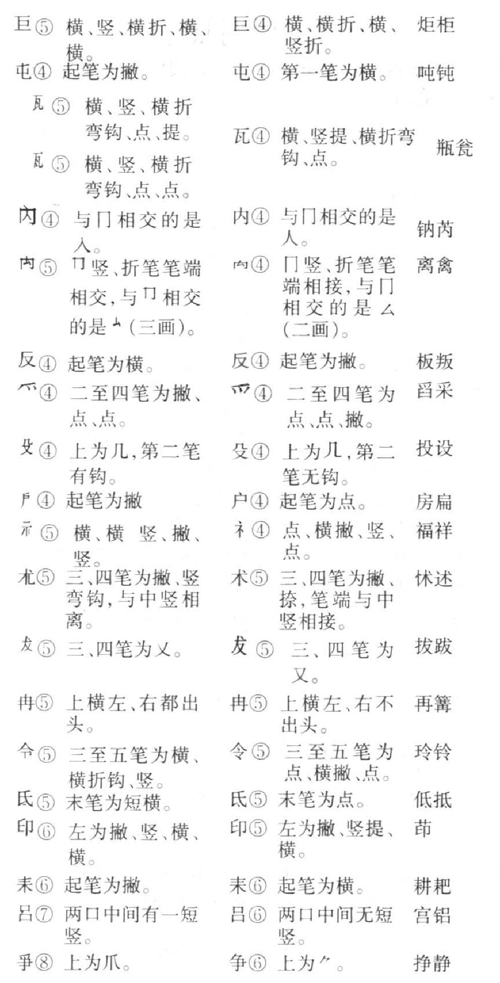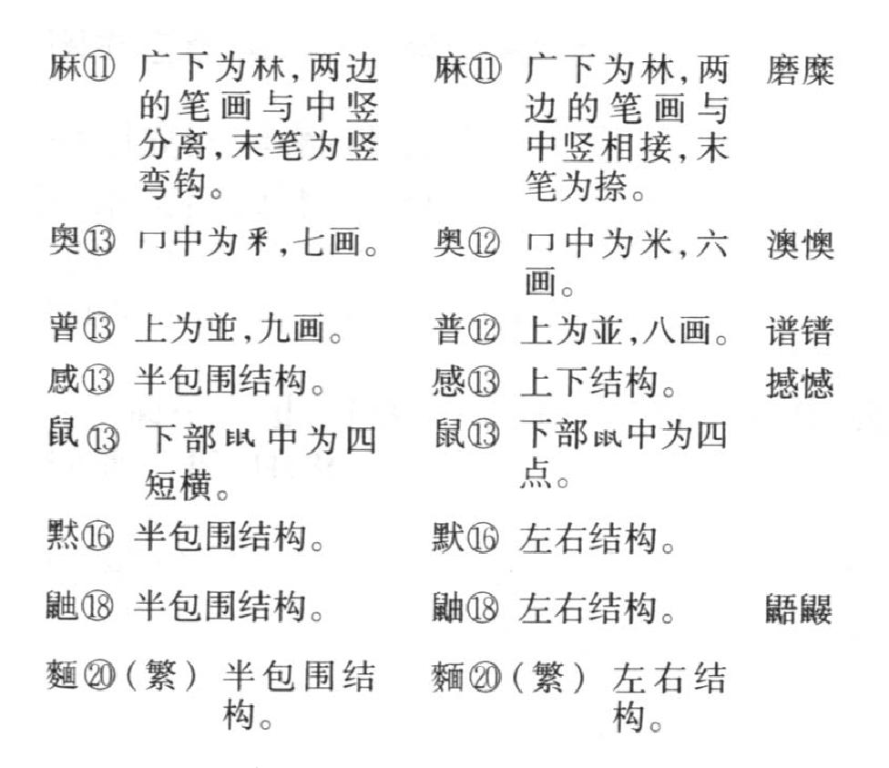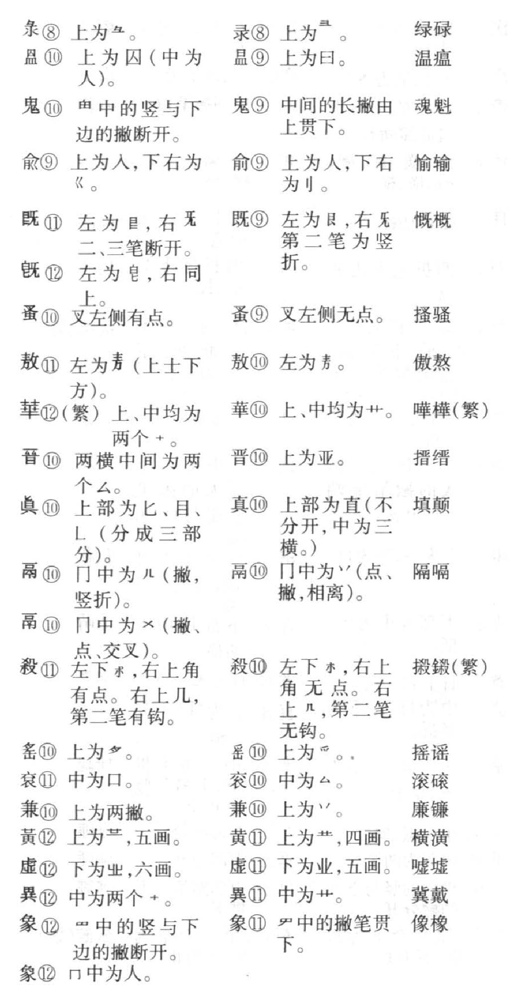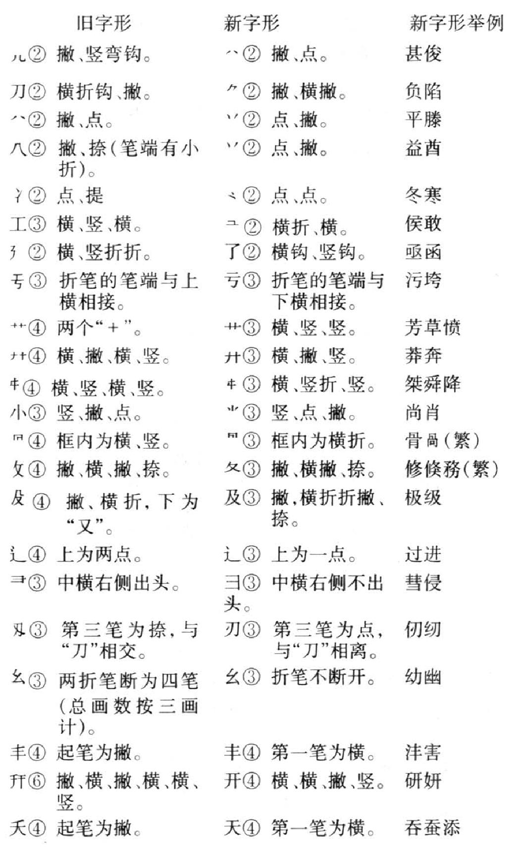 (按新字形的笔画数排列,字形后圆圈内的数字表示字形的笔画数)