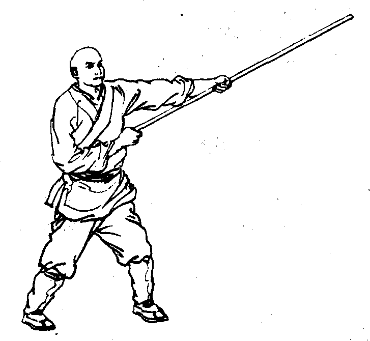 殳法。指以殳横击的方法。《十八般武艺全书·殳法》:“通袖势,……双手将棍卷向左方,左手抢接,同时身亦旋向反方向,足成左前弓步,然后将棍猛力向左面横击。”