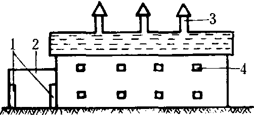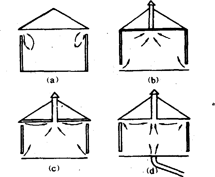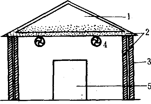 释义 | 通风库贮藏common storage利用自然通风的隔热建筑贮藏果品的方法。其特点类似窑窖,但有较完善的隔热建筑和效率较高的导气设施, 能保持果品较适宜的贮藏环境。 图1 普通通风贮藏库 图 2 改良式通风贮藏库 图 3 分列式普通通风库 1. 库门; 2. 排气口; 3. 库房; 4. 通气口; 5. 通道 图 4 普通通风库库墙、 库房结构 一般为长方形, 长20~50米, 宽5~9米, 高3~4米。普通通风库设有缓冲间、排气筒、导气窗(图1), 改良式通风库设有缓冲间和排风扇(图2)。还可根据贮藏量大小,可单间建库,亦可将两栋或两栋以上库房纵向并联建筑, 成分列式(图3)。通风贮藏库的库墙、库顶、库门及通风设施都应具有一定的隔热保温结构, 才可使库内保持较为稳定的低温(图4、图5)。地上式、半地下式通风贮藏库建筑在地面上的库墙一般为夹层墙,即在两层砖墙中间填放干燥、导热系数比较小的隔热材料,如膨胀珍珠岩、稻壳、蛭石、炉渣等填实, 以免下沉。为了防止隔热材料潮湿, 还需在内墙的外侧、外墙的内侧、库墙基部用油毡、沥青或防水涂料等进行处理,亦可用塑料薄膜作防水层将隔热材料密封在两层库墙之间。库顶有3种形式: ❶人字形屋顶。下设天花板吊顶, 在天花板上铺放干燥的导热系数小的材料; ❷平顶。将隔热材料夹放在顶部结构的中间层; ❸拱形顶。用砖、石、混凝土砌成拱形, 然后在顶上覆盖自然干燥的土壤,土层厚度应在1.5米以上, 也可在拱顶上加放隔热材料做保温层。上述3种库顶, 除覆土外,均应对隔热材料进行防潮处理。在建筑库房时, 宜选用具有一定厚度的、导热系数小, 即热阻较大的材料(见机械冷藏),才能使库体具有良好的隔热保温性能。冬季气温常在-10~-20℃的地区, 若使库温稳定在0℃,库墙热阻应在1.56~2.11,库顶热阻应在1.95~2.67。冬季温度低于-20℃的地区, 应酌情增加隔热层的厚度。每一层结构的热阻, 可用以下公式计算: 式中 R为每一层结构的热阻(m2 · h · ℃/kcal);S为该层结构的厚度(m); λ为该层建筑材料的导热系数(kcal/m3·h·℃)。各层结构热阻的总和, 即为库墙或库顶的总热阻。 图 5 改良式通风库库墙、库顶结构示意图 通风系统是通风贮藏库结构中的重要组成部分。主要有下列4种(图6):❶在库墙的上部设通风窗,兼有导气、排气作用; ❷在库墙的下部设导气窗, 在库顶设排气筒(天窗); ❸在库墙基部和上部设导气窗,顶部设排气筒; ❹在库房基部设地道式导气筒, 库墙上部设排气筒, 在顶部开天窗。根据冷空气下降, 热空气上升形成对流的原理进行通风换气, 是普通通风库设置导气口和排气口的基本指导思想。这种通风系统效率的高低,决定于进、出风口的温差和高差的大小,温差和高差越大,通风效率越高。但在实际应用中由于受库房建筑高度的限制, 高差不大, 而秋季果品采收季节库内外又不可能有很大的温差, 所以, 这种通风系统的通风效率较低。为了克服普通通风库通风系统的弊病, 采用封闭原有天窗和导排气窗, 由库门进风或在迎风面另设进风口, 并在与进风口相对的墙上设置轴流风机, 实行强制通风, 能有效地利用秋季夜间短暂的冷源以降低库温。 图 6 普通通风库通风类型 应用技术与效果 果实适时、无伤采收, 剔除病、虫果, 按要求进行包装后入库贮存。根据库内外温差决定通风降温或保温。贮藏初期白天气温较高, 夜间有较多的冷凉空气, 此时的关键措施是当库外出现低于库内温度时, 启动排风扇通风或开放全部进、排气窗, 引入冷空气降低库温和果温, 直至库温降至果品贮藏需要的温度为止。贮藏中期为寒冷的冬季, 此时要防止果实受冻,必要时在白天进行适当通风换气,以保持所需的低温和排除不良气体。贮藏后期, 库温随外界气温升高而回升,这时的管理技术与初期相同。当应用改良式通风库贮藏苹果时,在北纬40度附近地区,10月中旬库温可降至10℃以下,11月中旬即可降至0℃,以后平稳地保持0℃的时间可达110天以上, 为苹果贮藏提供了良好的条件。当采用塑料薄膜包装自发气调时, 贮藏效果可好于普通冷库贮藏。在保持适宜贮藏温度的前提下, 根据果实贮藏生物学特性, 结合使用塑料薄膜袋包装, 果实涂料、钙盐处理, 防腐保鲜剂等技术均有利于保持果实原有品质并延长贮藏寿命。 通风库贮藏ventilated storage将蔬菜产品存贮在具有完备通风装置及良好隔热结构的永久性库房中的一种贮藏方式。它是在半固定棚窖基础上发展起来并利用自然温差调节库温的贮藏方式,在中国的应用历史虽不长,但发展却很快。从20世纪50年代到70年代,北方各大中城市兴建规模较大,是贮藏大白菜、萝卜、胡萝卜、结球甘蓝、马铃薯、洋葱等多种蔬菜的主要方式。 |