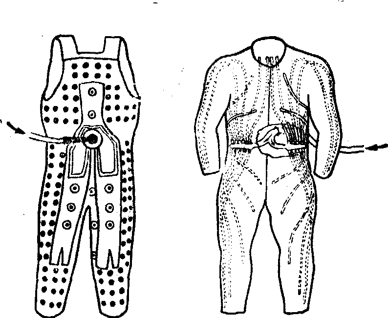 释义 | 通风服用于给飞行人员散热或加温的特种服装。由衣面、通风管等组成。工作时能保证人体各部分均匀通风,且不妨碍活动。 通风服 通风服通风服,或称“气冷服”,是一种用于减轻身体温度负荷的专门防护服装。其原理是: 由气源系统供给一定温度的气体,经通风服管路系统按固定分配比例关系,不断在身体与服装间流过,于体表周围建立起适宜的微小气候环境,以满足人体热平衡的需要。现代军用飞机座舱虽已装有性能较好的环境控制系统,但仍难以解决某些特殊条件下(如在炎热地区作低空大速度飞行)的舱内温度控制问题。再者,由于穿着各种特殊防护服装所带来的热负荷问题,亦难以由单独提高座舱空调性能的途径解决。且为保证战术性能,军用飞机上也不可能安装性能过高的隔热、冷却装置。针对上述实际问题,采用通风服减轻热负荷实更为经济、合理。目前通风服已日益成为飞行防护服装配套中不可缺少的一部分。如果送入通风服的空气温度,高于平均皮肤温度,则还有对身体加热的作用,可以防护低温侵袭。故现代的通风服已发展成为可具有冷却、加热双重作用的温度防护服装,但以前者为主。 图1 通风服 图2 夹层式通风服的结构剖面图 1.外层 2. 内层 3. 垫圈 4.垫圈上的小孔 5.内层上的小孔 6.身体表面 7.通风空隙 8.飞行服的外层 影响通风服性能的因素很多。根据温度生理学研究成果,对通风服设计工作提出下列原则: ❶服装所能覆盖的体表面积应尽可能增大,以便流经服装的气体,能与身体更多部位的体表接触,直接进行热交换。 ❷体表各部位的气体流量分配,应以身体不同体表区域的生理学特点为依据,以达到提高散热效率、保证舒适和节省通风量的目的。应予注意的区域性生理特点有:局部血管的分布、血液供应、神经支配和组织隔热性能等,以及由于这些特点所决定的局部热量散失上的差异;此外,为保持正常身体表面纵向温度梯度,还应适当增加四肢体表的风量,使肢体的皮肤温度低于躯干。 ❸头部通风问题应作专门考虑。因头部是一个良好的“热交换器”,有很高的散热效率,故对头部实施冷却,可从身体带走大量的热;再者,头部受到冷却时,通过“逆流热交换机制”,能使该部位动、静脉血流之间得以直接进行热交换,可在全身有热负荷的情况下使脑组织温度接近正常。这对于减少疲劳、提高工作效率以及改善体温调节机能,均有一定作用。 ❹通风服的位置可以安排在整个配套飞行服内或外。若为降温目的,通风气体应尽可能在接近体表处释放出来;如为加温目的,则气体应在服装隔热层的浅表部位释放出来。 ❺为充分利用“动态隔热作用”,以取得更好的防护效果,从管道流出的气体,应尽可能在服装间多滞留一段时间。 ❻应穿着舒适,体积小、耐穿、易洗,并适合与其它飞行防护服装配套使用。关于通风服风温、风量和风湿参数的选定,较为复杂,取决于多方面的因素。首先,与飞行人员当时的着装情况、代谢水平和所处温度环境条件等有关。其次,这三个参数之间尚有一定的内在联系。例如,在通风湿度恒定的情况下,风温低时,风量即可减少;反之,风温高时,风量又需加大。再者,以“对流冷却”为主要散热方式的“对流性通风服”与以“蒸发散热”为主的“蒸发性通风服”,在选用参数的原则上,尚有所不同。前一种服装要求风温低、风量大;后一种则要求用低湿空气通风。又由于明显的蒸发冷却须待身体出汗始能发挥作用,因而穿着蒸发性通风服的飞行人员,其皮肤温度往往会稍高于舒适水平。而对流性通风服的温热舒适性较好,穿着时平均皮肤温度可接近33℃,从躯干至肢端可保持5~6℃的体表温度梯度。后一种通风服性能优越,但其配套气源在工程上要求较高。可以根据舒适性要求、穿着时间的长短等具体选用。 通风服的冷却能力有限,如热负荷很大时则需采用“液冷服”(或称“水冷服”),以水为冷却介质进一步提高服装散热效能。 ☚ 飞机座舱微小气候 抗暴露服 ☛ |