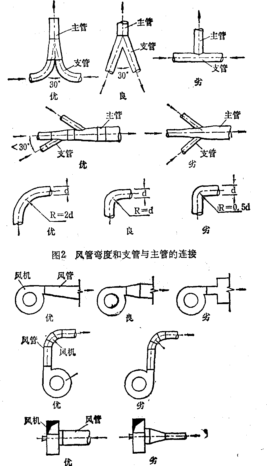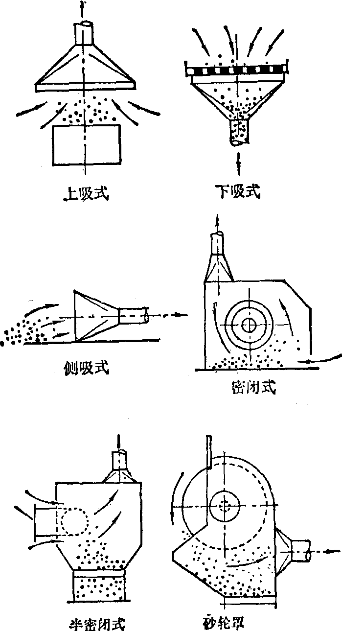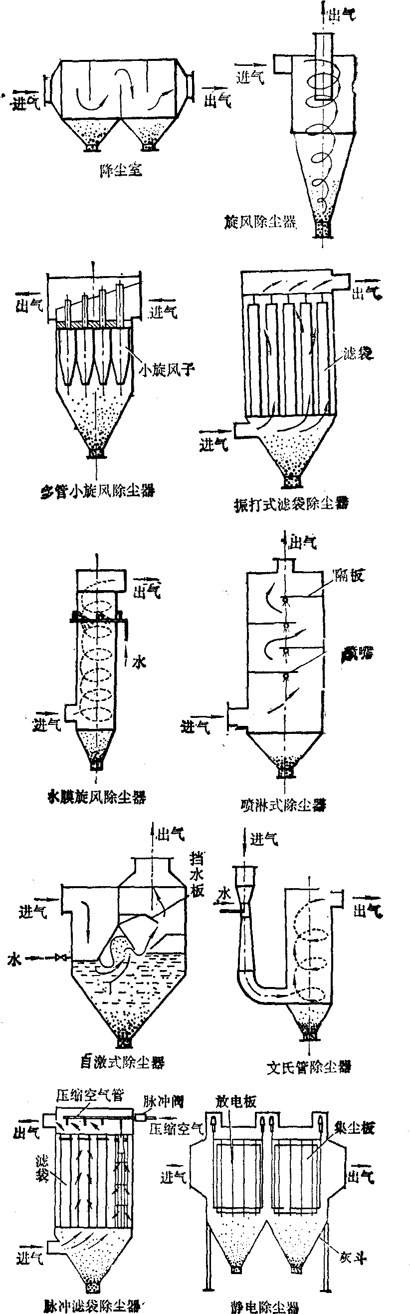 释义 | 通风除尘 通风除尘通风除尘是工厂防尘工作中的一项行之有效的技术措施,如能密切结合生产工艺,因地制宜地设计,不仅可改善劳动环境和保护工人健康,还可回收有用材料和减少对周围大气的污染。 图1 各种型式的吸尘罩 吸尘罩 直接安装在尘源旁,借助罩口的吸气作用控制粉尘不外逸。吸尘罩有多种型式(图1),其性能直接影响整个除尘系统的效果,在选择和设计时要注意以下几点: ❶罩子应尽量靠近尘源,并加以围挡、密闭,以便用较少的抽风量取得较好防尘效果。 ❷罩子吸气方向应尽可能与粉尘运动方向一致,充分利用含尘气流本身的功能,以减少抽气动力的消耗。 ❸罩子形状要与生产操作相适应,但要注意含尘空气抽入罩子时不应经过操作者呼吸带。 ❹吸尘罩形式确定后,需设计罩口的控制风速和抽风量。控制风速要考虑物料的比重,粒度和干扰气流等因素。不同形式吸尘罩用于不同场合所需的抽风量,差异很大,要分别计算。 风管 用以输送来自吸尘罩的含尘空气。为防止粉尘堵塞和磨损风管,设计时应注意以下问题: ❶风管应尽可能垂直或倾斜敷设,与水平面的倾斜角应不小于45°~60°。若条件限制无法满足上述要求时,也可采用较小倾斜角或水平敷设,但此时须在弯头、三通等异形管件附近设清扫孔,以便定期清除风管中的积尘。 ❷风管应采用圆形截面,一般宜明设。当必须在地下敷设时,应将风道设在地沟内,以便检修。 ❸风管系统应力求简单,吸气点不宜太多,一般不超过5~6个。风管与风机的连接,支管与主管的连接,必须合理,以尽量避免和减少涡流的产生为原则。支管连接于主管的三通夹角一般以15°~30°为宜。图2、图3表示风管的各种安装与连接方法的优劣比较。 ❹风管内应保持输送粉尘所必需的最低风速,以防止粉尘在其中沉降。 图3 风管与风机的连接 除尘器 用于分离出含尘气流中的粉尘并加以收集,以防止直接排放而污染大气,并可回收有用材料。除尘器是除尘系统中的关键设备,型式很多,可分为干式和湿式两大类。其性能好坏通常是用它的平均除尘效率表示,但应注意尘粒愈小,一般除尘器对它的捕集效率就愈低,而微细的可吸入尘粒对人体健康的危害则较大。因此在设计使用时应了解除尘器对不同粒度尘粒的分级除尘效率。常用除尘器的结构和性能见附表和图4。 风机 风机是抽气的动力设备,分离心式和轴流式两种。在除尘系统中,由于阻力较大,通常采用离心式风机。在选用风机时,除应根据除尘系统所需抽风量和风压以选择适当型号外,还须注意以下几点: ❶当气流中混有易燃、易爆和腐蚀性物质时,要选用防爆和防腐蚀风机。 ❷在选用风机时应对噪声的限制加以考虑,必要时可采用隔震、消声等措施。 ❸由于计算和施工可能产生的误差,以及风道系统可能漏风和额外损耗,在选择风机时,总风量应有10~15%,风压应有15~20%的富裕量。 常用除尘器的结构和性能