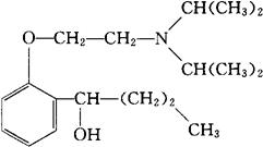 C18H31NO2=293.45 CAS-7488-92-8 o-[2-(二异丙基氨基)乙氧基]-α-丙基苄醇。 o-[2-(Diisopropylamino)ethoxy]-α-propylbenzylalcoho1. 2-[2-[双(1-甲基乙基)氨基]乙氧基]-α-丙基苯甲醇。 2-[2-[Bis(1-methyl ethyl)amino]ethoxy]-α-propylbenzenemethanol. 抗心律失常药,麻醉药。 Ketocainol,Rec 71o544. INN,USAN.