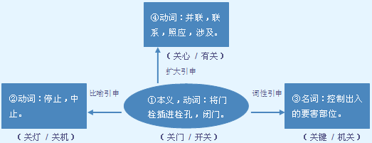 释义 | ![]() 使开着的物体合拢: ~门|~上窗户|~上水龙头|把抽屉~起来。 闭 bì 合 hé ★ “关”、“闭”、“合”都用于固定的搭配,如说“闭幕、闭上眼睛、闭关自守、闭门不出、合上笔记本电脑、她竟会笑得合不拢嘴”。 ❶ 合上,闭拢: ~门|~好冰箱|你快把窗户~了。 开 kāi ~门|~箱子。 启 qǐ 开~闸门|这酒还没~封|信封上写着“父亲大人亲~”。 ❷ 使(机器、装置等)停止工作: ~机|~灯|把空调~掉。 开 kāi ~电视|打~电扇。 ❸ 收押;不使出来: ~押|~犯人|~在笼子里|~了一段时间。 放 fàng ~虎归山|你快把那人~了吧。 使开着的物体合拢;放在里面不使出来;倒闭、歇业。常作带宾、带补谓语。 ~窗户|~抽屉|鸡窝里~着一只大公鸡|由于经营不善,他只好~了这家工厂|她把孩子~在家里去上班了|门~得严严的|请你把门~起来|这扇窗户坏了,我~了半天也没~上|下雨了,他赶忙~紧了窗子|他被~进了监狱。 ❶古代在交通险要或边境出入的地方设置的守卫处所。 a.用作语素构成合成词。 ~口|阳~道|山海~。 b.用于比喻,在句中作宾语。 不能让次品混过~去|他企图蒙混过~。 ❷货物出口和入口收税的地方。常用作语素构成合成词。 海~|~卡|~税。 ❸比喻重要的转折点或不容易度过的一段时间。常带上定语作句子成分。 a.作主语。 这一~非突破不可|在艰苦的环境中,劳动~、生活~还比较容易度过,思想~就不那么容易过了。 b.作宾语。 我们一定能突破这一~。 ❹起转折关联作用的部分。常用作语素构成合成词。 机~|~节。 【近】 〈动〉闭 合 〈名〉隘 卡 【反】 〈动〉开 放 启 【词语】 关隘 关闭 关东 关防 关乎 关节炎 关里 关联 关卡 关山 关上 关涉 关押 关中 关子 字源解说 关,金文 ![]() ![]() ![]() ![]() ![]() ![]() ![]() ![]() ![]() ![]() ![]() ![]() ![]() ![]() ![]() ![]() ![]() ![]() ![]() 附 文言版《説文解字》:關,以木橫持門戶也。从門, ![]() 附 白话版《说文解字》:关,用木栓横穿两扇门的栓孔,使两扇门板牢牢紧闭。字形采用“门”作边旁,采用“ ![]() 引申线索 ![]() 字源解说 “関”是“關”的异体字。串,既是声旁也是形旁,表示穿连贯通。關,金文 ![]() ![]() ![]() ![]() ![]() ![]() ![]() ![]() ![]() ![]() ![]() ![]() ![]() ![]() ![]() ![]() ![]() ![]() ![]() ![]() ![]() ![]() ![]() ![]() ![]() ![]() ![]() ![]() ![]() ![]() ![]() ![]() ![]() ![]() ![]() ![]() ![]() ![]() ![]() ![]() ![]() 附 文言版《説文解字》:關,以木橫持門戶也。从門, ![]() 附 白话版《说文解字》:关,用木栓横穿两扇门的栓孔,使两扇门板牢牢紧闭。字形采用“门”作边旁,采用“ ![]() 【字族索引】 天 关 【同音字】 guān |