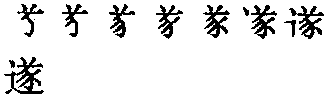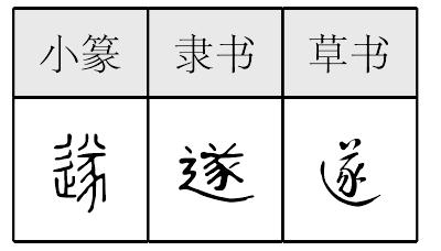 【提示】 和辶的末笔原本均是捺, 为避重捺, 的末笔捺改点。辶,3画,上面一点; 旧字形4画,上面两点。辶的第二笔,宋体是横折,楷体是横折折撇。 *遂suí12画 辶部 义同“遂(suì)(2)”,用于“半身不遂”(偏瘫)。 另见suì(384页)。