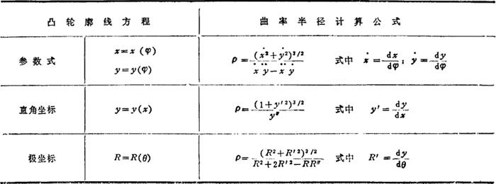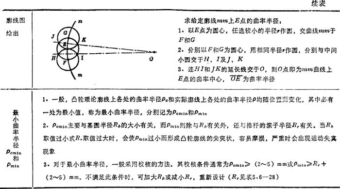 凸轮廓线曲率半径ρ的计算及ρmin校核条件见表5.6-27。