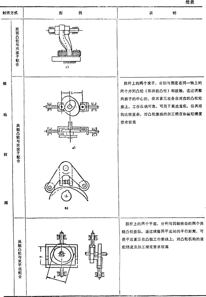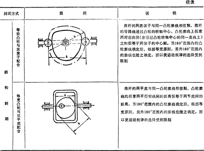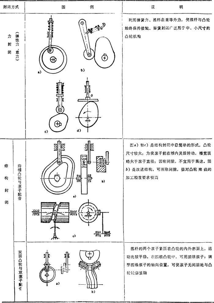 凸轮机构的基本型式见表5.6-4、5.6-5、5.6-6,封闭方式见表6.5-7。