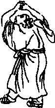 闭气,如鸟飞头起,吸尾闾气朝顶虚,双手躬前,头要仰起,仰神破顶。