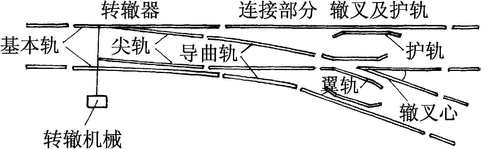 释义 | 道岔dào chà使列车由一组轨道转到另一组轨道上去的装置。1905年《商部又颁发铁路月计表程式》:“支材料各款: 枕木()、钢轨()、铁桥()、道岔()、道尖()、涵洞()、沟管()、零件()。” 道岔把一条轨道分岔为两条或两条以上轨道的设备。根据用途和结构的不同,可分为:单开道岔,单式对称道岔,单式不对称道岔,单式同侧道岔,三开道岔,不对称三开道岔,菱形交叉,直角交叉,单式交分道岔,复式交分道岔,交叉渡线及套线道岔。道岔的型号是用它的钢轨类型及辙叉号码来表示的,道岔号码越大,列车通过的速度可以越高。中国铁路铺设道岔的号码有:6、7、9、12、18、24及30号等。至1999年,全路共有道岔143046组,其中锰钢辙叉129397组,占90.4%,弹性可弯AT尖轨道岔24642组,可动心轨道岔1259组。75kg/m道岔59组,60kg/m道岔29716组,50kg/m道岔52295组,43kg/m道岔58176组,其他道岔为2800组。最大号码道岔30号铺在京沪线蚌埠铁路分局和京广线郑州铁路分局管内。30号道岔的辙叉角为1°54′33″,导曲线半径为2700m,道岔全长为102.4m,直向允许通过速度为300km/h,侧向允许通过速度为140km/h。 道岔使铁路的机车车辆从一条线路转往另一条线路所用的一种设备。 道岔 道岔turnout机车车辆从一股道转入或越过另一股道的线路设备。类型很多,最基本的是单开道岔,其他类型的道岔由它演变而得。它由转辙器、辙叉和护轨以及连接部分组成,并铺设在岔枕上(见下图)。转辙器有两根尖轨、基本轨、转辙机械及联结零件组成。转辙机械操纵两根尖轨贴靠或离开基本轨,引导车轮直向行驶或转入侧向。辙叉为使车轮从一股钢轨越过另一股钢轨的设备,由心轨、翼轨及护轨组成。心轨和翼轨可用普通钢轨经刨削组合而成,或用高锰钢浇铸成一整体,称整铸辙叉,它整体性和稳定性比较好,具有较高的强度、冲击韧性和耐腐性,故养护维修方便、使用寿命长。护轨设在辙叉两侧,用于控制车轮轮缘,使轮缘进入设定的轮缘槽内,防止与叉心碰撞。叉心两侧工作边间的夹角为辙叉角α。其余切值为道岔号数。中国铁路道岔的标准系列为6、7、9、12和18号等。号数大的道岔的辙叉角小,适用于行驶较高速度的列车。从辙叉咽喉至心轨实际尖端之间的轨线中断的距离为有害空间。道岔号数愈大,辙叉角愈小,有害空间愈大,虽有护轨保护,但仍使列车产生剧烈的振动和摇晃。为了适应提速和高速列车运行的需要,采用可动心轨辙叉,从而消灭了有害空间。连接部分为连接转辙器和辙叉的直股连接线和曲股连接线,后者称为导曲线。导曲线可为圆曲线或曲率渐变的曲线,在12号及以下的道岔多采用圆曲线,在18号及以上的大号道岔大多采用半径很大的圆曲线或曲率渐变的曲线。导曲线半径对侧向过岔速度影响很大。道岔号数愈大,导曲线半径愈大,容许侧向过岔速度也愈大。 道岔 ☚ 胀轨跑道 铁路交叉 ☛ |