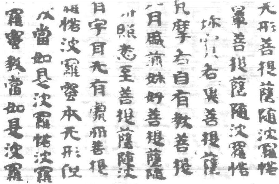 释义 | 道行般若波羅蜜經有西晉·元康六年 (296)題跋。舆〈諸佛要集經〉一并發見于新疆吐魯蕃吐峪溝,書風亦酷似,殆為同時作。據《大乘佛典譯經》,此係東漢名僧支婁迦讖最初譯頁之一。出土將近一世紀,于書道、佛學諸方面俱屬珍貴之資。已為日本大谷探查隊携去日本。 道行般若波羅蜜經(局部) |