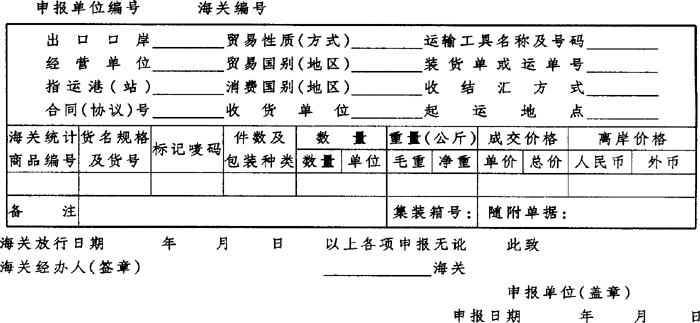 释义 | 出口货物报关单与出口货物明细单 【简介】: 根据外销出仓规定,出口单位须填制出口货物报关单,国际联运、陆运则填出口货物明细单,并加盖单位公章。这是出口商品向我海关申报出口,凭以放行的重要单据,也是海关对商品出口统计的原始资料,其中载明海关统计商品编号、商品名称、数量、重量、总值(人民币和折合美元两项离岸价值)、标记唛头以及输往国别和运输方式等都必须详细填注。如系集装箱方式出运的,通过海关验货封箱之后,还要将箱号填上。“出口货物报关单”一般应在托运以前缮制完毕。据以向海关申报出口,凡属法定检验的出口商品,还需送商品检验局加盖检验合格章。海关验明货物无误后即在单上加盖放行章。申报手续完成后,出口商品才能装上运输工具出运。 此项报关单,海运一式两份;联运一式三份,如系国际联运需填出口明细单9份,其中1份交海关,2份出口单位留存,其余部分交外运公司使用,不再附缴发票。空运除照填出口货物报关单一式三份外,还需填写国际货物托运单一式两份。邮包需填出口货物报关单一式三份,交寄邮件须附填“发递单”一份和“报税单”两份报验出运。 此项报关单的填写应做到完整、正确,一经递交原则上不能予以更改。 【范例】: 中华人民共和国海关出口货物报关单 中华人民共和国海关出口货物报关单 出口货物报关单(进料加工专用) 进料加工专用 中华人民共和国海关出口货物报关单 出口货物报关单(来料加工、补偿贸易专用) 来料加工 补偿贸易 专用 申报日期 年 月 日 |