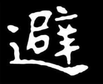 ❹无所回避 避 金文; 篆bì[辶(辵,意符)+辟(聲符)→避(《説文》:“避,回也。從辵,辟聲。”避,躲,設法躲開〈避雨、避暑〉; 防止〈避免、避孕、避嫌、避雷針〉。)] [春秋] 孫武《孫子·虛實》:“夫兵形象水,水之形避高而趨下,兵之形避實而擊虛。”(軍隊作戰就像水的運動,水勢必然由高向下,軍隊作戰必須避實擊虛。) [宋] 柳永《夜半樂·凍雲黯淡天氣》:“浣紗遊女,避行客,含羞相笑語。” 避 bì(16画)