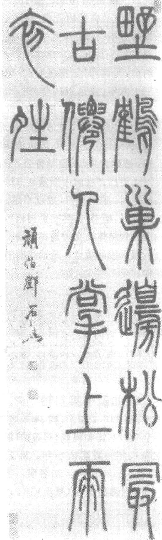 释义 | 邓石如篆书集句轴 邓石如篆书集句轴清。纸本。纵116.7厘米,横34.5厘米。北京故宫博物院藏。邓石如(清乾隆八年—清嘉庆十年,即公元1743—1805年),初名琰,字石如,因避嘉庆帝(顒琰)讳,以字行,更字顽伯,号完白山人,安徽怀宁人。少好篆刻。客居江宁梅氏,纵观秦汉以来金石善本。擅长篆、隶书,尤以篆书突出。他以李斯、李阳冰为宗,参法东汉曹魏部分碑额及《天发神谶碑》笔意,集众家之长,自成一家面目。是清代成就最高的篆隶大家。包世臣称其篆书和隶书为“神品”。邓氏以后,学篆书者无不效法,号为“邓派”。此幅篆书,运笔流畅,结构严谨布局稳健而清丽,是邓石如篆书佳作。 ☚ 钱沣楷书七贤祠记册 巴慰祖隶书五言诗轴 ☛ |