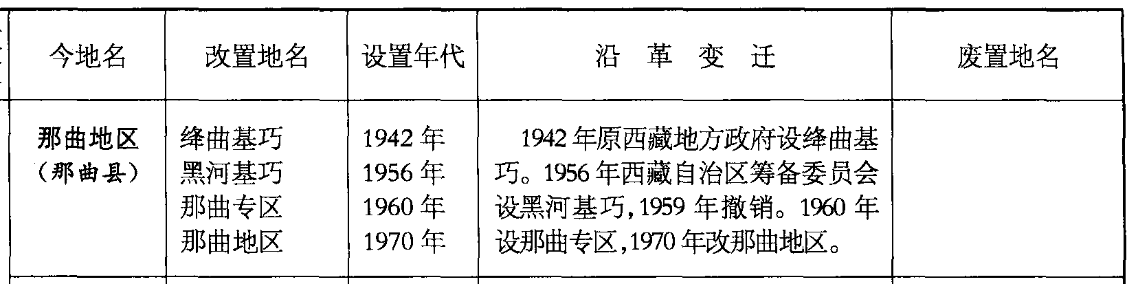 那曲地区(那曲县)绛曲基巧黑河基巧那曲专区那曲地区1942年1956年1960年1970年1942年原西藏地方政府设绛曲基巧。1956年西藏自治区筹备委员会设黑河基巧,1959年撤销。1960年设那曲专区,1970年改那曲地区。