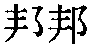 邦Bāng现行较罕见姓氏。分布很广: 今天津之武清,河北之辛集、乐亭,山西之太原、运城、大同,安徽之泾县,福建之浦城等地均有。汉族姓氏。《姓氏考略》 收载,初见於 《姓苑》。其源不一: ❶ 《姓氏考略》 以为 “出孔子弟子邦选”; ❷ 《姓氏词典》 引《正字通》 云: “北魏馝邦氏所改。” 宋代有邦彪篯; 明代有邦严,顺德府通判。 邦bāng❶國。張衡《七辯》:“漢雖舊邦,其政惟新。” ❷亦指古代諸侯封國。見“邦國”。 ❸指都邑。張衡《南都賦》:“察茲邦之神偉,啟天心而寤靈。” 邦 邦bāng周代诸侯的封地。《说文》:“邦,国也。”段玉裁注:“《周礼》注曰: ‘大曰邦,小曰国。’析言之也。许云: ‘邦,国也。’统言之也。《周礼》注又云:‘邦之所居亦曰国。’此谓统言,则封竟之内曰国曰邑。古者城郭所在曰国曰邑,而不曰邦。邦之言封也,古邦、封通用。”《鄘风·君子偕老》三章:“展如之人兮,邦之媛也。” 《韩诗》“媛”作“援”,云:“援,取也。”毛《传》: “展,诚也。美女为媛。”郑《笺》:“媛者,邦人所依倚以为援助也。疾宣姜有此盛服,而以淫昏乱国,故云然。”王先谦《集疏》:“此言卫娶齐女,藉结好媛。”《大雅·瞻卬》一章:“邦靡有定,士民其瘵。”瘵,zhài,忧患。郑《笺》:“邦国无有安定者,士卒与民皆劳病。”《周颂·烈文》一章:“无封靡于尔邦,维王其崇之。”毛《传》:“封,大也;靡,累也;崇,立也。”郑《笺》:“崇,厚也。无大累于女国,谓诸侯治国,无罪恶也。王其厚之,增其爵士也。”《白虎通·诛伐篇》:“《诗》云: ‘毋封靡于尔邦,唯王其崇之。’此言追诛大罪也,或盗天子土地自立为诸侯,绝之而已。”王先谦《集疏》:“诗言但无大罪当诛者,维王其益厚之。” ☚ 母氏 邦人 ☛ 邦读音b·ang(-),为ang韵目,属ang—iang—uang韵部。博江切,平,江韵。 ❶国;国家。 ❷诸侯的封国。如:王此大邦。 ❸引申为“分封”。 上一条: 枊 下一条: "> 邦ㄅㄤbāng二1569①名用石块嵌砌的河岸的外层。江淮官话。江苏南通。民间文艺《魏二郎》:「青石的个~噢,开沟挖塘垦荒的个荡啊。」②名方面,相当于「边」。⑴中原官话。河南汝南〖 〗。喂,两~出土(挖渠时)把土出向两边!⑵晋语。河南获嘉〖 〗。河那~有土。③动拉。客话。广东梅县:妹爱走来郎爱~,~转你来嬲下添。④动拔。客话。广东梅县。⑤量群;伙。吴语。上海〖 〗。一~人‖一~强盗。⑥副很;较。西南官话。四川成都〖 〗。~硬‖~重。四川奉节〖 〗。把门关得~紧。   邦bāng❶国家 △ 友~|联~。 ❷姓。 【注意】首笔是横(一),第四笔是竖撇(丿)。以“邦”为偏旁的字有“梆、绑、帮”等。 邦bāng