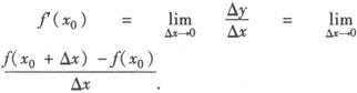 如果当△x→0时,有极限,我们说函数在x0处可导,并把这个极限叫做f(x)在x0处的导数(或变化率),记作f(x0)或y′|x=x0,即