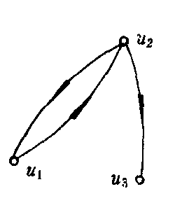 释义 | 邻接矩阵 邻接矩阵linjie juzhen能表示图的一种矩阵.设G=〈V,E〉为简单图,V={v1,v2,…,vn},则n阶方阵 当且仅当图G没有边时,A(G) =0.如图 G1 G2 G1,G2的邻接矩阵分别为 简单无向图的邻接矩阵是对称方阵,主对角线上元素全为0,第i行1的个数恰为vi的度数. 简单有向图的邻接矩阵未必是对称方阵,主对角线上元素全为0,第i行1的个数是vi的出度d+(vi),第j列1的个数是vi的入度d-(vj). 简单图的邻接矩阵描述了图的全部信息.因而可以认为邻接矩阵就是图本身. 将G的点重新编号得图G1,则G与G1的邻接矩阵适合以下关系 A (G1)=P-1A (G) P=P⋅A (G) P 式中P为某n阶置换方阵,即每行每列只有1个1其余均为0的n阶方阵.G的邻接矩阵A (G)=(aij) ![]() 更一般,设G的邻接矩阵为A (G),则(A (G))t的第i行第j列元aij(l)等于G中vi到vj的长为l的路的条数. 例如图 由A (G)2可看出v1到v1的长为2的路有1条,即v1e1v2e2v1;v1到v3长为2的路有1条,即v1e1v2e3v3;等等. 利用G= (V,E>,|V|=n,任二点间若有路,必有长≤n-1的路 (若有回路,则有长≤n的回路),则 B =A(G)+A(G)2十A(G)3 +…+A(G)n 给出G中任二点 (包括到自身的回路) 间长度小于等于R的路的总条数. B称为G的通路矩阵或路径矩阵.于是,前面例子中G的通路矩阵为 若将G的通路矩阵B的非0元素换为1,0保持不动,得到矩阵P.则P称为G的可达性矩阵. P刻划了任二点之间是否有路这一重要属性而舍弃了路的长度及条数. 可达性矩阵也可直接定义如下: 还可用下述方法求P.在计算A (G)。时,将非0元素换为1,0保持不动,得A (G)(2); 再利用A (G)(3)=A (G) ·A (G)(2) 直接计算A (G) ·A (G)(2),且化简得A (G) (3),即将非0元素换为1,0保持不动. 依次可得 A(G)(4),…,A(G)(n),最后将 A (G) +A (G)(2)+…+A (G)(n) 的非0元素换为1,0保持不动,得到的就是可达性矩阵P.☚ 路和回路 连通 ☛ |