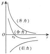 | 释义 | 分子间的相互作用力 1.分子间同时存在著相互作用的引力和斥力.其合力叫分子力. 2.分子间同时存在的引力和斥力的特点:分子间的引力和斥力都随分子间距离的增大而减小,随分子间距离的减小而增大,但斥力比引力变化得快.如下图所示.