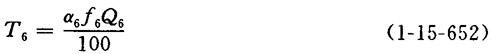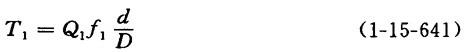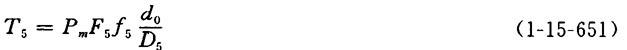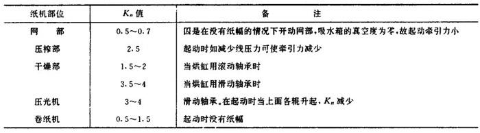 释义 | 分步计算法 【说明】 分步计算法是对纸机各分部的实际耗用功率,分别根据其受力的具体情况与要求加以分析计算的方法。它能反映纸机的具体结构特点和工作特点。在完成纸机各部结构设计的基础上,利用此法可较精确地计算出各部所需的功率。在进行计算时,必须知道轴承上的负荷、辊筒和轴颈的直径、轴承及密封中的摩擦系数和铜网对吸水箱的摩擦以及各辊筒之间的滚动摩擦等。 1.克服轴承内的摩擦所需的功率 ❶ 克服一个辊的轴承中摩擦力所需的功率 【公式】 式中 P1——克服一辊轴承摩擦所需功率(kw) Q1——轴承上的总负荷(包括辊自重、铜网或毛毯拉力的合力、上辊给轴承的负荷等)(N) V1——轴颈的圆周速度(m/min) f1——轴承中的摩擦系数,滚动轴承一般为0.01~0.02,滚珠轴承取低值,滚柱轴承取高值;采用带油环润滑的滑动轴承时,可取0.03~0.04 T1——加在辊筒外径D上的牵引力(N) d——轴颈的直径(m) D——辊筒的外径(m) V——辊的圆周速度(m/min) ❷ 每个分部各个轴承的摩擦力所需功率 【公式】 式中 ∑T1——该分部所有辊牵引力的总和(N) 其它同上 2.克服两辊之间的滚动摩擦所需的功率 【公式】 式中 P2——克服滚动摩擦所需功率(kW) T2——克服两辊之间滚动摩擦所加于上、下两辊的总牵引力(N) Tx——附加于下辊的牵引力(N) Ts——附加于上辊的牵引力(N) Q2——两辊之间的压力(N) Dx——下辊直径(cm) Ds——上辊直径(cm) K——滚动摩擦系数(cm),对具有包胶下辊的压榨辊来说,K=0.07~0.16cm,胶层越软,毛布越厚,则K值越大;对压光机来说,如辊间有纸幅通过时,K=0.015~0.018cm 3.克服刮刀对辊筒或对烘缸的摩擦力所需的功率 【公式】 式中 T3——克服刮刀对辊筒或对烘缸的摩擦所需的牵引力(N) T3=f3q3b (1-15-647) f3——刮刀对辊的摩擦系数,对网部和压榨部的刮刀其值如下:当q3=1.96~2.94N/cm(0.2~0.3kgf/cm)时,f3=0.2~0.25;当q3=1.96~3.92N/cm(0.2~0.4kgf/cm)时,f3=0.2~0.3;对于压光机的刮刀,当q3=0.98~2.94N/cm(即0.1~0.3kgf/cm)时,f3=0.15~0.2 q——刮刀对辊的线压力(N/cm) B——刮刀与辊接触的长度(cm) 4.用于克服铜网对吸水箱表面摩擦力所需的功率 【公式】 式中 P4——所需功率(kW) T4——用于克服铜网对吸水箱表面摩擦的牵引力(N) T4=f4FP (1-15-649) F4——铜网及吸水箱之间的摩擦系数,取决于箱面的材料种类,对未浸蜡的木面板,f4=0.3~0.4;对夹布胶面板或浸蜡木面板,f4=0.15~0.18 F——吸水箱的有效面积(抽气面积)(m2) P——真空度的平均值(Pa),其值与纸种有关,薄页纸P=0.02~0.03Pa;新闻纸P=0.07~0.12Pa 5.用于克服密封物与真空辊外壳之间的摩擦或烘缸蒸汽头密封填料的摩擦所需的功 【公式】 式中 P5——所需功率(kW) T5——克服密封物与真空辊外壳之间的摩擦或烘缸蒸汽头密封填料的摩擦所需的牵引力(N) Pm——密封物的单位压力(Pa) F5——密封物与辊筒的回转面的接触面积(m2) f5——密封物与真空辊内表面之间的摩擦系数(或密封物与垫片回转面之间的摩擦系数) d0——产生摩擦的回转面的直径(m) D5——辊筒或烘缸的外径(m) 6.压光机所需功率的计算 【说明】 当计算压光机的功率时,除了按上述方法算出各种牵引力外,还要加上为了克服压光机某一辊筒和它的下辊之间的滑动摩擦所需的牵引力,再按上述方法求出该项功率。 ❶ 辊筒克服滑动摩擦的牵引力 【公式】 式中 T6——牵引力(N) α6——压光机辊筒之间的滑动(%),一般为0.05~0.1% f6——辊面沿著纸幅的滑动系数,一般取0.3 Q6——该辊筒和它的下辊之间的压力(N) ❷ 所有辊筒克服滑动摩擦的牵引力 【说明】 因辊与辊缝间都有滑动摩擦,因此要将所有辊筒(除传动的底辊外)克服滑动摩擦的牵引力T6先行确定,然后相加,或者按下式用各辊之间的压力总和来求牵引力总和。 【公式】 式中 T6′——牵引力总和(N) ∑Q6——所有辊筒间压力的总和(N) ∑Q6=1G2+2G3+……(n-1)(Gn+Pn) (1-15-654) G2——第二辊和它的轴承重力(N) G3——第三辊及其轴承的重力(N) Gn——第n辊及其轴承的重力(N) Pn——附加压力(N) n——压光机的辊数 ❸ 其它各种牵引力的计算 【说明】 其它牵引力主要包括克服轴承内的摩擦所需的牵引力(见式1-15-641)、克服两辊之间的滚动摩擦所需的牵引力(见式1-15-645)、克服刮刀对辊筒的摩擦所需的牵引力(见式1-15-647)等。将其相加后,即得出T其这里不再复述。 ❹ 压光机所需功率的计算 【公式】 式中 P6——压光机所需功率(kW) 其它同上 7.造纸机各分部所耗用的总功率计算 【说明】 造纸机各分部耗用的总功率,实际上是求各分部牵引力的总和,据此,即可求出该分部所耗用的总功率。 【公式】 式中 P部——造纸机分部所耗总功率(kW) ∑T——分部内各牵引力的总和(N) 其它同上 8.造纸机传动所需的总功率 【说明】 将求出的各分部所耗用的总功率相加,即为造纸机传动所需的总功率。 【公式】 P总=∑P部 (1-15-657) 式中 P总——总功率(kW) ∑P部——各分部功率之和(kW) 9.几点注意的问题 【说明】 ❷ 牵引力的大小与纸机的速度有关。纸机的车速在100~150m/min时,牵引力最小;纸机车速为300~500m/min,并使用滑动轴承时,牵引力需增加15~30%。当车速提高时,牵引力的增加系数kv可用下式计算: KV=1+0.0004(V-150) (1-15-658) 通常可以认为车速在150m/min以上,每增加50m/min,牵引力则增加2%。另外,牵引力是以纸机正常的生产工艺条件来计算的,但在操作过程中由于生产工艺条件的改变,也会