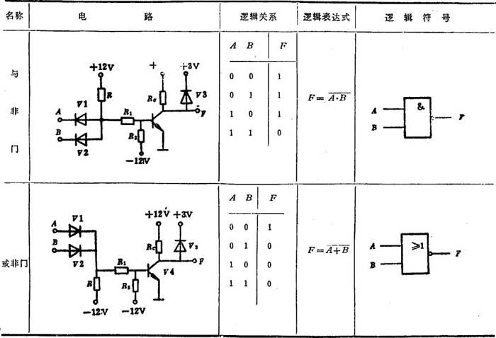 用基本门电路可以组成各种复合门电路。表8.3-27所示为与非门和或非门的电路、逻辑关系、逻辑表达式及逻辑符号。