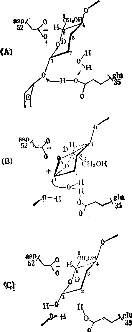 释义 | 酶的作用机理 酶的作用机理酶何以有如此高的催化效率,这是酶学研究的一个中心课题,不仅在理论上而且在应用上都有重要的意义。按照化学动力学中比较普遍接受的过渡态理论,一个反应的发生总是有一些键断裂和另一些键生成。介于原来键断裂和新键生成的中间状态叫过渡态。反应物的基态和过渡态所处的能量状态不同,这个能量差叫能垒。在一定温度下只有一部分分子的能量能达到能垒顶部的水平,形成过渡态,然后再转变成产物(图1)。当一个反应在酶的参与下进行时,一般要比原来非催化的反应多经历几步,但由于酶与过渡态中间物的紧密结合,稳定了底物处于中间态时结构,降低了底物形成其过渡态所需克服的能垒,结果提高了反应的速度。 图1 非催化反应和酶催化反应达到过渡态所需克服能垒的比较 2. 微环境效应与多元催化:在酶的活性部位由于局部微环境的影响,使某些酸性基团和碱性基团彼此靠近,或使同一种基团有的带上正电荷,有的带上负电荷,从而发挥了既有酸催化又有碱催化的多元催化作用。例如核糖核酸酶在水解其底物时,第12位和第119位这两个组氨酸分别起着碱催化和酸催化的作用,前者从核糖的2′位羟基上接受一个质子,后者则提供一个质子,与磷酸的氧原子形成氢键。 图2 邻近与定向效应示意图 图3 溶菌酶作用过程中底物分子构象变化示意图 3. 底物的形变:在酶的诱导下,底物分子中被作用的键会产生一定的张力,使结合变弱,因而更易断裂。例如溶酶结合底物后,使底物分子中有一个糖的环发生了扭曲,水解就发生在该处的键上(图3)。这一形变可能使底物结构更加趋近于过渡态中间物的结构,使催化反应易于进行。 4. 酶的构象的变化: 酶与底物的作用是相互的,一方面酶诱导底物发生形变,另一方面底物结合在酶上后也会使酶的构象发生一定的变化,使其活性部位的催化基团与底物分子中被作用的键更好地契合。例如羧肽酶A结合底物后,酶分子就有一个比较大的构象变化。其中第248位酪氨酸移动的距离竟达到酶分子直径的四分之一。这一构象变化使得酶分子中起催化作用的基团与被水解的肽链相互靠近,同时形成了一个疏水性的口袋。加强了底物与酶的相互作用。 ☚ 米氏方程 酶的应用 ☛ |