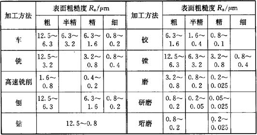 (三)切削加工能够达到的表面粗糙度(表5.3-7) 表5.3-7 各种加工方法能够达到的表面粗糙度