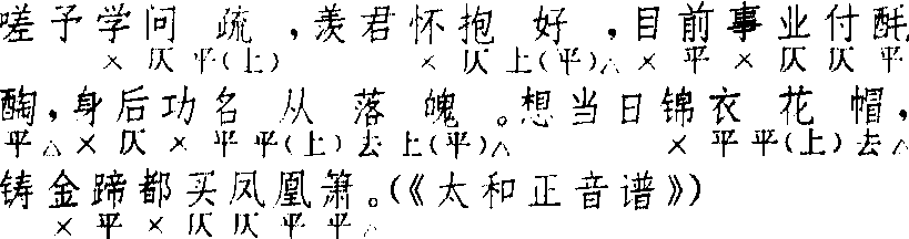 释义 | 醋葫芦 醋葫芦王子一 散套 ![]() 全曲六句:3,3△,7△,7△。4△,7△。首二句须对。第四句偶有作五字句者,如乔吉“恨青青画桥”套“病多不耐秋”。末句亦有偶作五字句者,如无名氏“彩云收凤台”套“江上数峰青”。无名氏《百花亭》末二句:“抵多少惊回春睡,早难道爱月夜眠迟。”《元曲选》本上句于“早”字断句,“惊回春睡早”与“爱月夜眠迟”恰好成五字一联,实为误标失律,盖为“惜花春起早,爱月夜眠迟”所误。套中可连用多支,剧套如马致远等《黄粱梦》连用十支,散套如无名氏“记当年宴青楼”套连用七支。《北曲新谱》谓:“因使用甚多,故时有违律之作,杂剧尤甚。”《清平山堂话本》“刎颈鸳鸯会”,讲述故事,间以歌唱,用〔醋葫芦〕十支。 ☚ 金菊香 挂金索 ☛ 《醋葫芦》醋葫芦