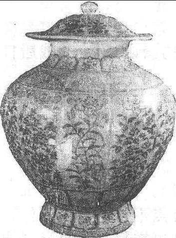 释义 | 釉里红盖罐元代。高61.5、口径22.11、腹径48.8,底径27厘米。盖作荷叶形,边缘起伏平缓,造型为瓜楞式,显示出元瓷雄壮浑厚的气魄。胎骨厚重,画面由宋代刻、划、印等发展到采用绘画多层次装饰方法,上下饰莲瓣纹图案,器肩画垂云纹(俗称云肩)。腹部为十二楞形,填以各种花卉,主要饰以缠枝牡丹,折枝牡丹,缠枝团菊,缠枝莲花,纹饰繁密,多至七、八层,但绵延盘绕,结构清晰。釉里红是釉下彩的一种,早期的瓷器所呈现的红色差别很大,往往由于铜在高温下易挥发或还原焰控制不够好,以致显出灰黑色,淡灰色,现藏旅顺博物馆。 釉里红盖罐 |