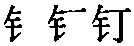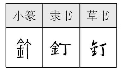 釘,形声,从金,丁声,本义读dīnɡ,冶炼而成的饼状黄金,引申为钉子(细小的棒状物品,一端扁平,一端尖锐)、紧跟着不放松等;又读dìnɡ,引申为把钉子或楔子砸进别的物件里。《简化字表》类推简作“钉”。 |