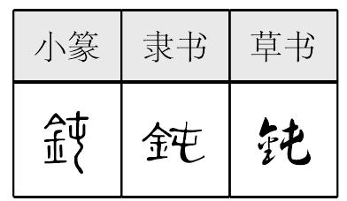 dùn鈍,形声,从金,屯声,本义为刀剑不锋利,引申为不顺利、不灵活等。《简化字表》类推简作“钝”。 |