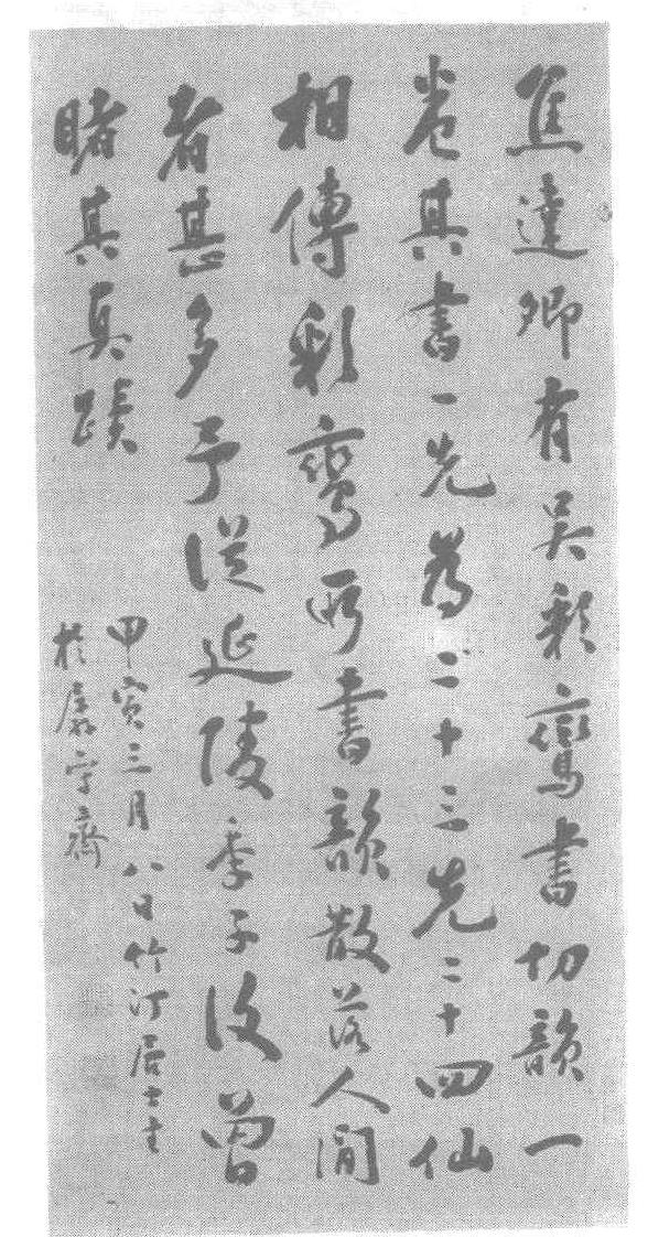 清。纸本。纵98.3厘米,横48厘米。北京故宫博物院藏。钱大昕(清雍正六年—清嘉庆九年,即公元1728—1804年),字晓徵,号辛楣、竹汀,江苏嘉定(今上海市)人。乾隆十九年(公元1754年)进士。官至少詹事。督学广东。历主钟山、娄东、紫阳书院。精研群籍,于经史百家、音韵训诂、典章制度、舆地历算无所不通,尤精金石汉隶,为乾嘉学派重要学者之一。此幅作品,大字行书,流宕转换,气势奔放,多用中锋浓墨,结体开张而稳重,是晚年佳作。