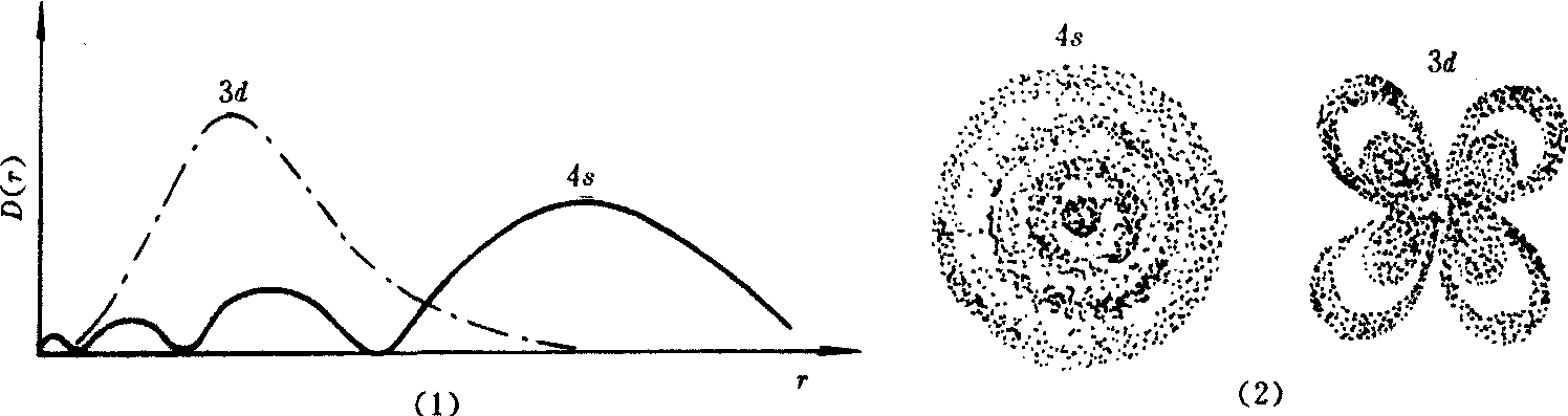 Ens 图2 (1) 3d,4s的几率径向分布函数图 (2) 电子云分布图 ☚ 屏蔽效应 斯莱脱规则 ☛ 钻穿效应又称“穿透效应”。在多电子原子中,在核附近出现几率较大的电子,可以较好地避免其他电子的屏蔽作用,受到核电荷的吸引作用较大,因而能量较低的现象。与屏蔽效应相关,共同决定了电子的能级顺序。 |