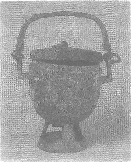 释义 | 铁盖铜锅 铁盖铜锅十六国。通高26.5厘米。1965年辽宁省北票县西官营子冯素弗墓出土。辽宁省博物馆藏。此锅制作较奇特,大镂孔高圈足。腹一侧出夹鼻,连接可启合的铁盖,盖与锅作子母扣合,盖顶附游环为钮。锅耳连铁环,悬于上面的铁梁,梁端铸龙首。锅与盖光素无纹。镂孔高圈足的圜底深腹锅为北方鲜卑等民族的炊具形制,但一般为立耳,无提梁。此锅附耳提梁,前所未见。提梁饰龙首,带有汉文化色彩。 ☚ 铜虎子 契丹族铜丝网罩 ☛ |