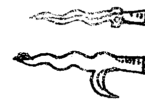 图54 铁矛 ☚ 枪术 戟 ☛ 铁矛汉代兵器之一种。1983年在吉林永吉县乌拉街乡古汉墓出土。现藏永吉县文物管理所。锻造。矛叶扁平,前锋锐利。圆筒状筩,上细下粗,筩未合拢,一侧有缝却,筩端平齐,筩与矛身交界处为实体,横截面呈扁方形。通长38厘米、刃宽3、中厚1、筩端3厘米 (见图)