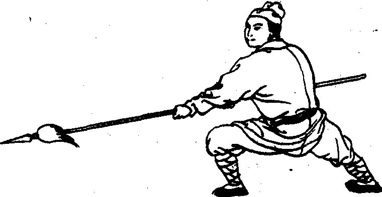 长枪枪法。明戚继光《纪效新书·长兵短用说篇·二十四枪势》的“铁翻竿势”:“乃外把门黄尤点竿枪法。一截二进蛇弄风,扑着鹌鹑不放松。”