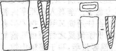 农具。1959年伊春市岱岭大青川出土。长28、宽6.8、厚2.8厘米。顶为半圆形连体环,下薄上厚,弧刃。使用时安柄,多用于开荒。为金代农具。