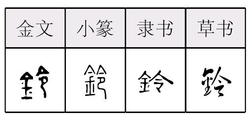 释义 | 铃 铃líng金属制成的响器,形似钟而小,有舌,摇动发音。《周颂·载见》一章:“龙旗阳阳,和铃央央。”毛《传》:“铃,在旂上。”马瑞辰《通释》: “铃与和銮,对文则异,散文则和銮可通称和铃,此诗和铃即和銮耳。” ☚ 钺 钲 ☛ 铃读音l·ing(ˊ),为ing韵目,属ing—eng韵部。郎丁切,平,青韵。 上一条: 令 下一条: 鈴 铃〔ling〕 njout njend. ![]() ![]() ![]() 铃鈴líng❶用金属制成的乐器,摇动时发声 铃❶用金属制成的响器,振动小锤而发声:~铛(dang)丨~声丨打~丨摇~丨串~丨电~丨警~丨銮(luan)~丨风~丨解~系(ji)~丨掩耳盗~。 铃líng❶ 用金属制成的,可以发出声音的,形状像钟而体积小的器具:铃声│鸾铃。 铃líng金属制成的响器,形似钟而小。比喻小声。《法言·吾子》:“好说而不要诸仲尼,说铃也。”李轨注:“铃,以谕小声,犹小说不合大雅。”清·黄宗羲《兵部左侍郎苍水张公墓志铭》:“愚公移山,精卫填海,常人藐为说铃,贤圣指为血路。” 铃ling铃铛 铃鼓 铃声 铃医 车铃 串铃 电铃 风铃1 杠铃结铃 警铃 蕾铃 棉铃 驼铃 响铃 哑铃 银铃 马铃薯 棉铃虫悬铃木 掩耳盗铃 解铃还须系铃人 铃ling(~儿)金属作成的响器。一般为圆形或钟形,中空,内置金属小锤或金属丸,晃动时打击铃壁出声,发出信号以报时或传呼,或作为乐器、玩具等;也指有同样作用的其他形状的响器,如电铃、车铃等:上课的~响了,快进教室去|你骑自行车怎么不按~? 铃líng指一种佩带在衣服上的小铃铛:只听铿锵叮噹,金~玉珮微微摇曳之声,并起跪靴履飒沓之响。(五三·1242) 古代名物 > 樂舞類 > 擊樂器部 > 板鐸鐃缶 > 鈴 鈴 líng 亦稱“令丁”。銅製,形如鐘而小,平口或凹口,中垂小銅舌,頂端有橋形鈕。常懸於車上、旗頭或犬馬頸上,摇動發聲。《廣韵·青韵》:“鈴,似鐘而小。”《詩·周頌·載見》:“龍旗陽陽,和鈴央央。”《周禮·春官·巾車》:“大祭祀,鳴鈴以應鷄人。”《說文·金部》:“鈴,令丁也。”今所見如“王成周玲”,青铜製。通高八厘米,紐高二·三厘米,口縱四·六厘米,横六·三厘米。腹外有銘文兩行四字:“王成周令(鈴)”。 铃【同义】总目录 铃玉铃 铃líng〖名词〗 铃líng❶ 铃铛。《诗经·周颂·载见》:“龙旗阳阳,和~央央。”(央央:铃声和谐。) 铃*鈴lingC1E5 打击乐器 打击乐器梆(梆子;南~) 简(简板;简版) 木鱼 拊搏 ☚ 打击乐器 钟 ☛ 铃铛 铃铛铃(铃子;车~;金~;铜~;风~;门~;马~) 铎(铃铎) 琅珰 琅当 ☚ 响器 军品 ☛ 其他拟状物 其他拟状物角(菱~;皂~) 锤(秤~;纺~) 蜡(~梅) 脊(山~;屋~) 玉(琼~) 门(闸~;灶~) 柱(水~;冰~) 耳(~房)齿(锯~) 舌(火~;帽~) 胆(瓶~;球~) 髓(木~;石~)泪(烛~;蜡~) 房(蜂~;莲~) 鱼(~雷;木~) 鳞(~甲;龙~) 鼓(石~) 嘴(壶~;瓶~;~嘴) 冠(鸡~;花~) 帽(螺丝~) 流(电~;气~) 排(竹~;牛~) 桥(鞍~) 井(矿~;天~) 花(蚕~;钢~) 絮(柳~;芦~) 臼(~齿) 结(喉~) 铃(杠~;哑~) 翼(机~)套(手~;袖~;笔~) 垄(瓦~;沙~) 箱(风~) 槽(牙~)山(~墙;冰~) 叶(百~窗) 爪(掣~) 栓(~剂) 尺(镇~;戒~) 核(煤~) 盘(磨~;棋~) 质(金~) 芽(肉~) 霜(柿~) 囊(胆~;肾~) 脉(叶~) 台(戏~;讲~) 脑(樟~;石~;豆腐~) 龙(~舟;火~)峰(洪~;驼~) 瓜(脑~) 蛇(~予;~弓) 礁(珊瑚~) 玻(~璃丝) 苗(火~) 乳(豆~;石钟~) 襻(车~;鞋~) 帘(眼~) 豆(土~) 鹿(~砦) 钱(榆~;纸~) 锁(石~;长命~) 潮(热~;高~;心~) 床(机~;车~) 裙(桌~;围~)刀(~币;冰~) 掌(仙人~) 缸(汽~;灰~) 桃(棉~;核~) 沟(瓦~) 牙(月~;轮~)腿(床~;桌~) 碗(钢~;轴~) 盒(骨~) 杯(金~) 柳(~眉;~腰) 腰(~鼓) 缨(萝卜~) 屏(网~;荧光~) 芽 枪(烟~) 炭(山楂~) 流(暖~) 花(泪~;葱~;油~) 峰(乳~;驼~) 觜 穗(~头;旗~) 月 ☚ 拟状物 某种用途的物品 ☛ 铃军中传令用器。《尉缭子·勒卒令》:“金、鼓、铃、旗,四者各有法:鼓之则进,重鼓则击。金之则止,重金则退。铃,传令也。旗麾之左则左,麾之右则右。” 铃líng❶(一儿)用金属制成的响器,最常见的是球形而下开一小口,里面放金属丸,也有钟形而里面悬着金属小锤的,都是振动时相击发声。此外,有电铃、车铃等,形状不一。 铃(鈴)línɡ ❶ (金属制成的响器) bell: 电 ~ an electric bell; 警 ~ alarm bell; 门 ~ door bell 铃bell 铃bell 铃líng