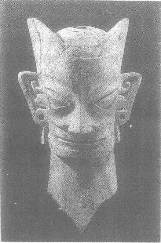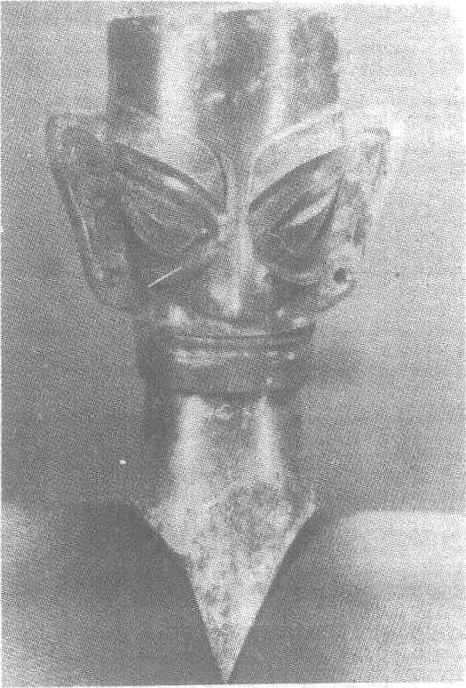 释义 | 铜人头像 铜人头像商。通高36.5厘米。1986年四川省广汉县三星堆2号祭坑出土。四川省文物管理委员会藏。平顶,阔眉高耸,巨目斜吊。鼻、口位置较低,嘴角下勾。两耳外支似扇,上饰云纹,耳垂上有圆穿。梳长发,拢向头后,发根部束紧,其下编成独根发辫。短颈下铸成倒三角形。人像面露严肃,相貌独特,具有显著的地方特色。 铜人头像 ☚ 石边璋 铜人头像 ☛ 铜人头像 铜人头像商。高29厘米。1986年四川省广汉县三星堆1号祭坑出土。四川省文物管理委员会藏。像冠已失,头顶仅剩子母口,眉峰高耸,大眼略向外凸,鼻、口皆大,唇紧闭。双耳与眉齐平,耳垂穿孔。头像面目严肃,一脸正气,形象有所夸张,富有感染力。 ☚ 铜人头像 铜人头像 ☛ 铜人头像 铜人头像商。通高34厘米。1986年四川省广汉县三星堆出土。四川省文物管理委员会藏。这件头像是三星堆祭祀坛中出土的各种不同式样头像中的一种。头戴冠,两边翘起。脸较长,具有棱角。粗眉高吊,大眼略向外凸。高鼻,鼻翼两侧伸出两条弧状凸棱,以示脸颊。唇紧闭,嘴角略向下勾。两耳呈扇形,饰云纹,耳垂上有穿孔。颈部以下铸成三角形。此件铸造精致,人物特征十分明显。 ☚ 铜人头像 跪坐人铜像 ☛ |